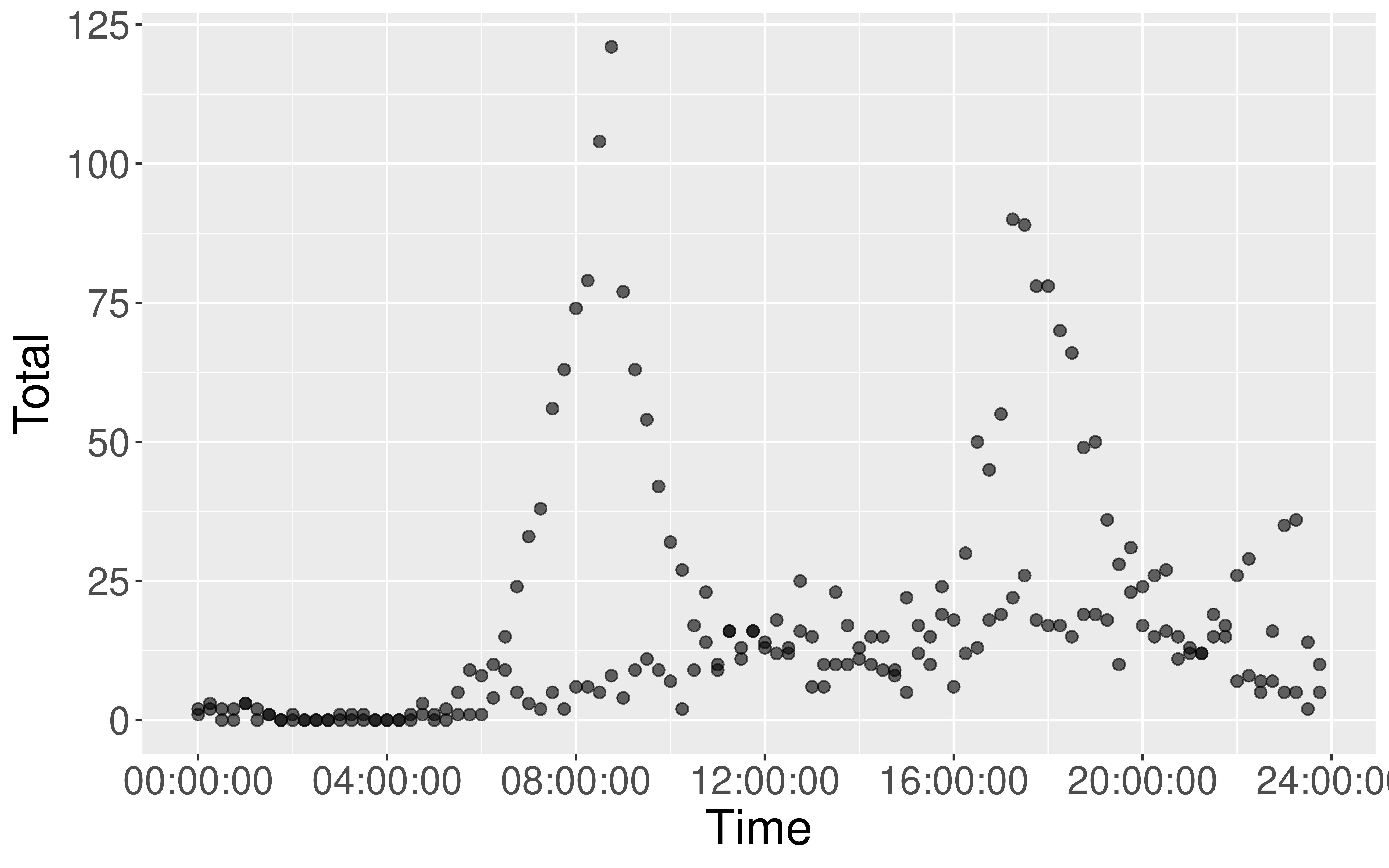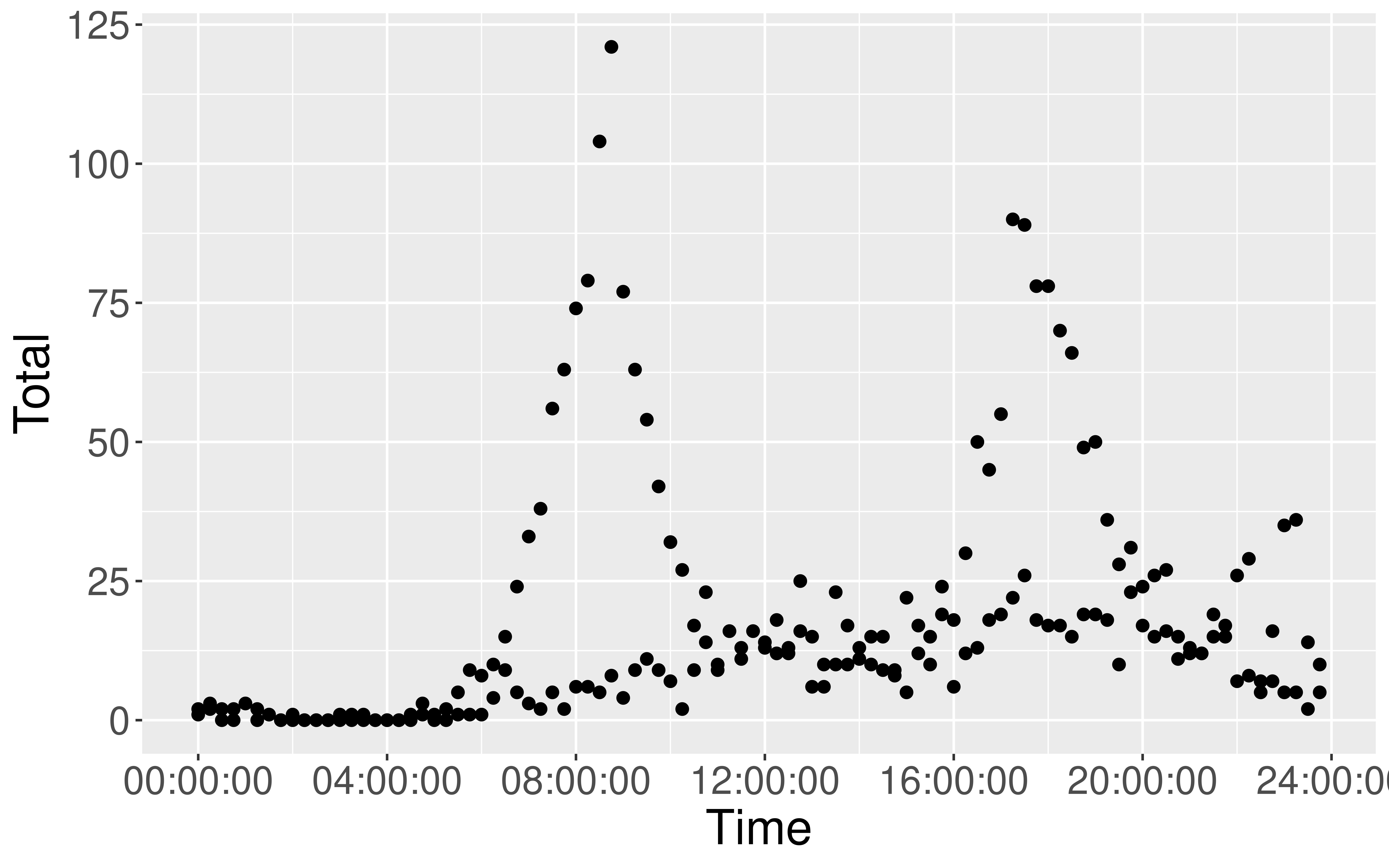 $ Westbound <dbl> 2, 3, 1, 0, 2, 2, 1, 0, 0, 0, 0, 0, 1, 1, 0, 0, 0, 0, 0, 1, …