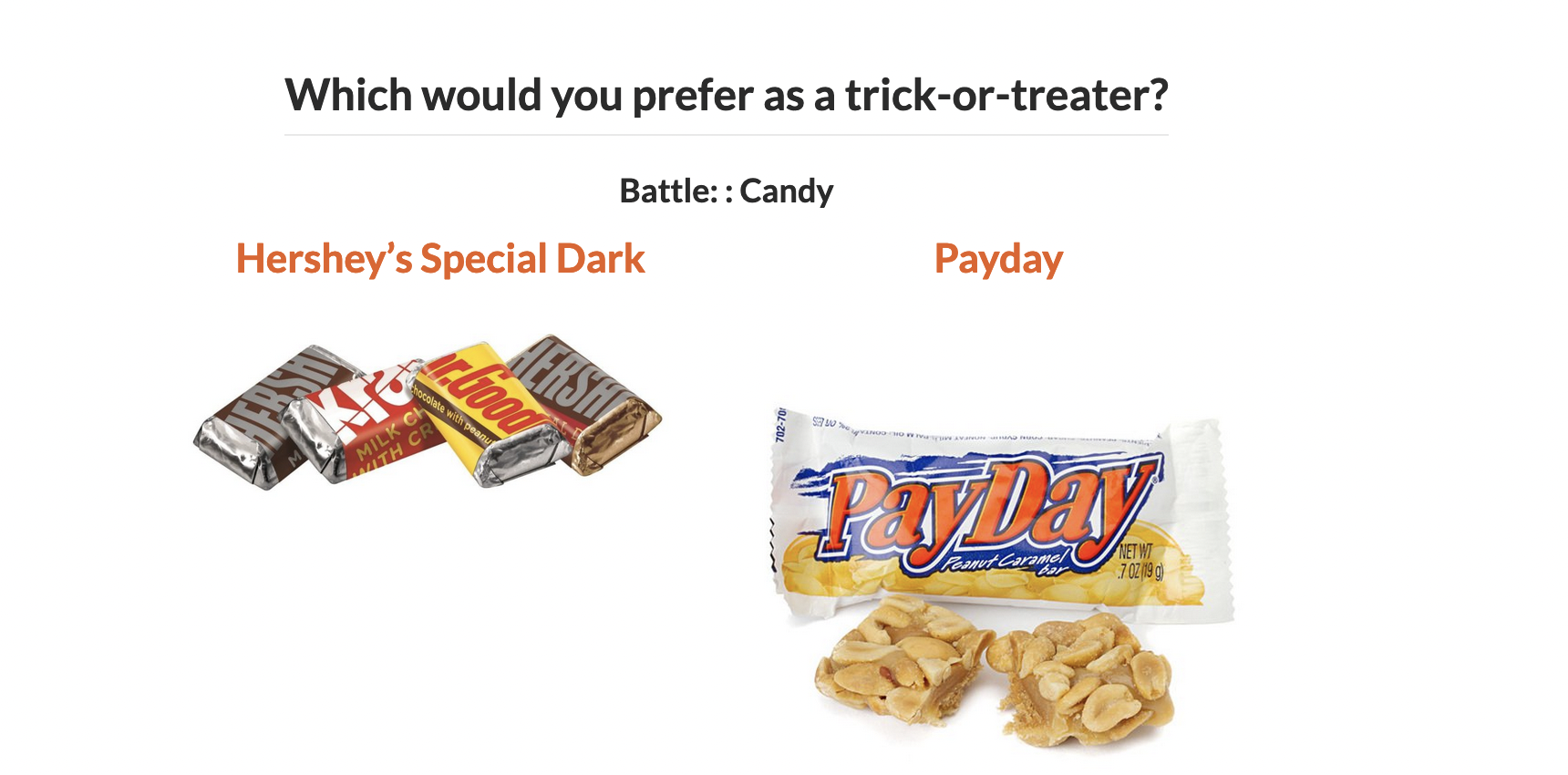 “The social contract of Halloween is simple: Provide adequate treats to costumed masses, or be prepared for late-night tricks from those dissatisfied with your offer. To help you avoid that type of vengeance, and to help you make good decisions at the supermarket this weekend, we wanted to figure out what Halloween candy people most prefer. So we devised an experiment: Pit dozens of fun-sized candy varietals against one another, and let the wisdom of the crowd decide which one was best.” – Walt Hickey