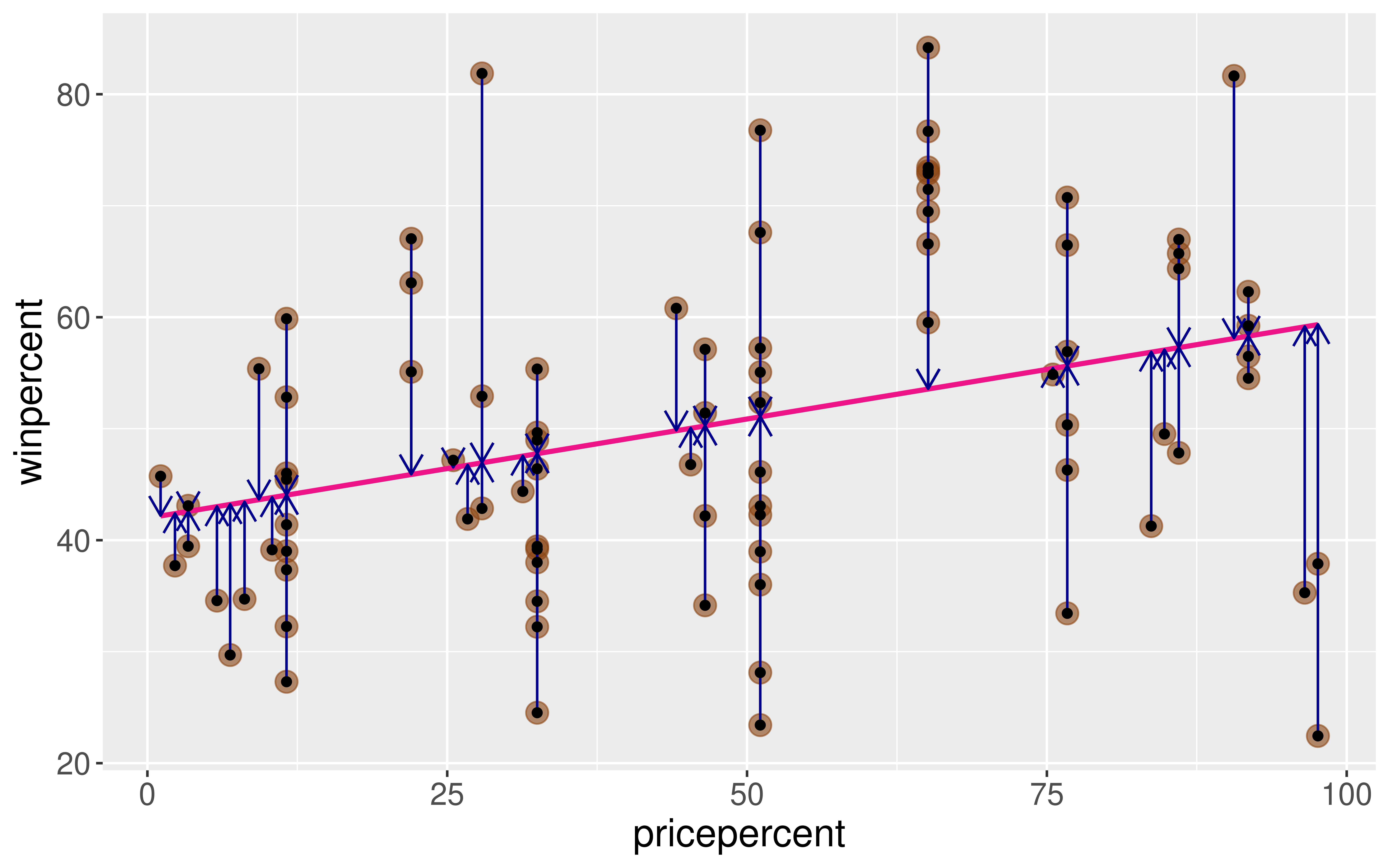 Goal: Pick values for \(\hat{\beta}_o\) and \(\hat{\beta}_1\) so that the residuals are small!