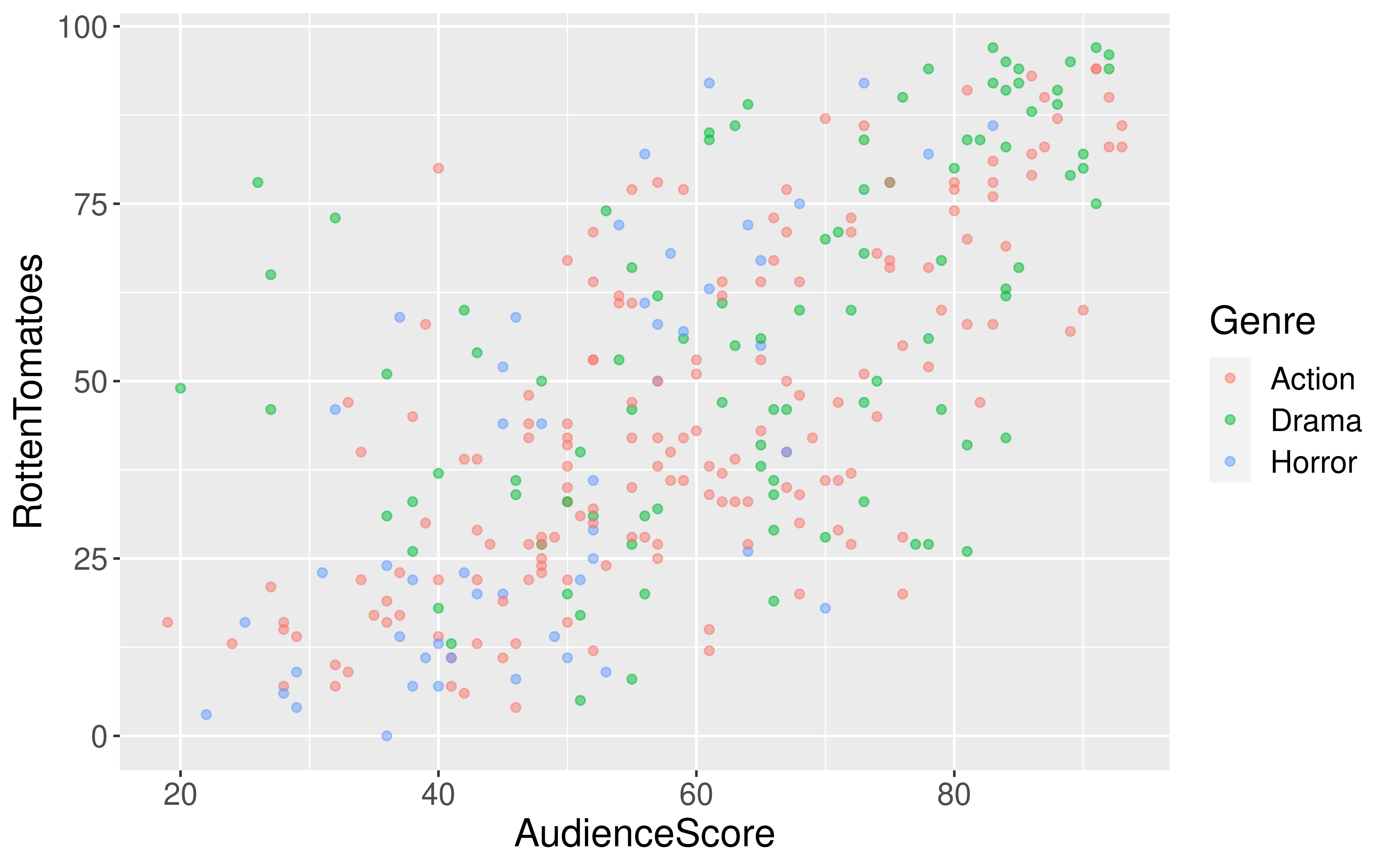 drop_na(Genre, AudienceScore, RottenTomatoes)
