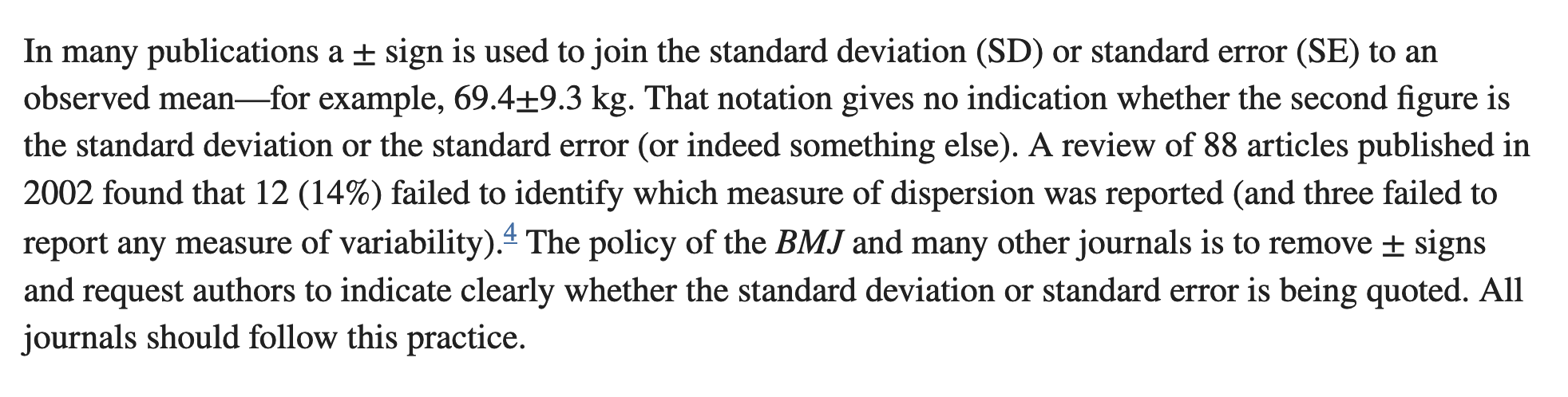 \[ \mbox{statistic} \pm{\mbox{ME}} \]