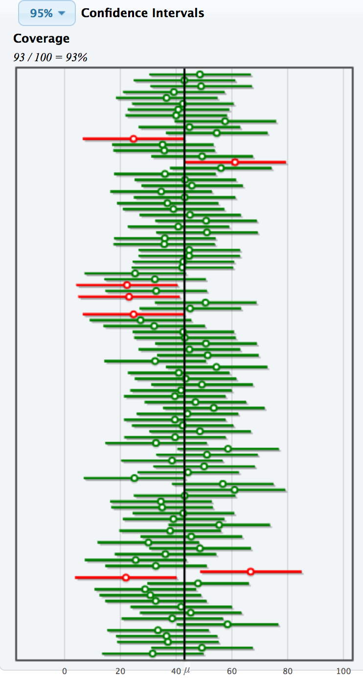 Safe interpretation: I am P% confident that {insert what the parameter represents in context} is between {insert lower bound} and {insert upper bound}.