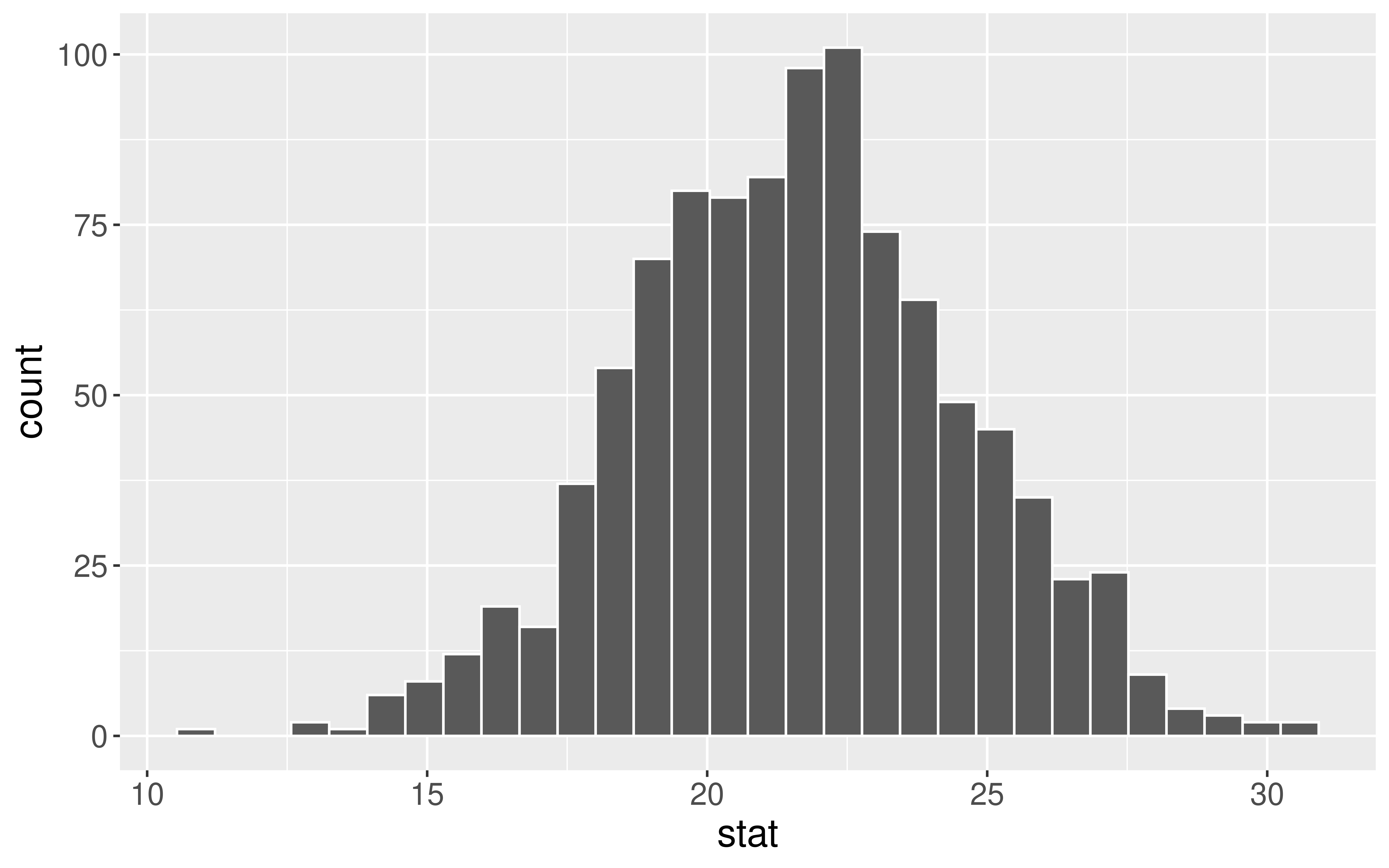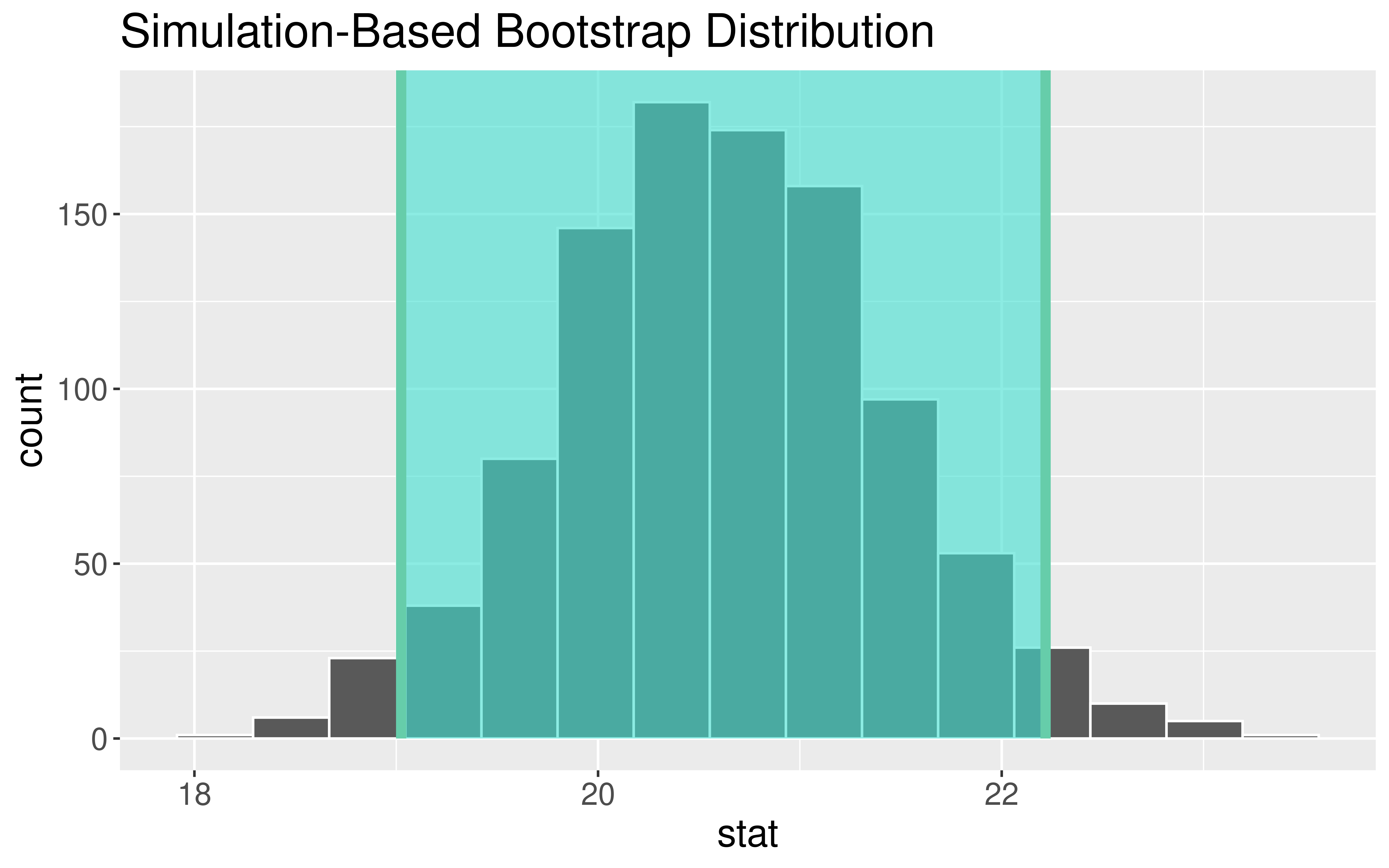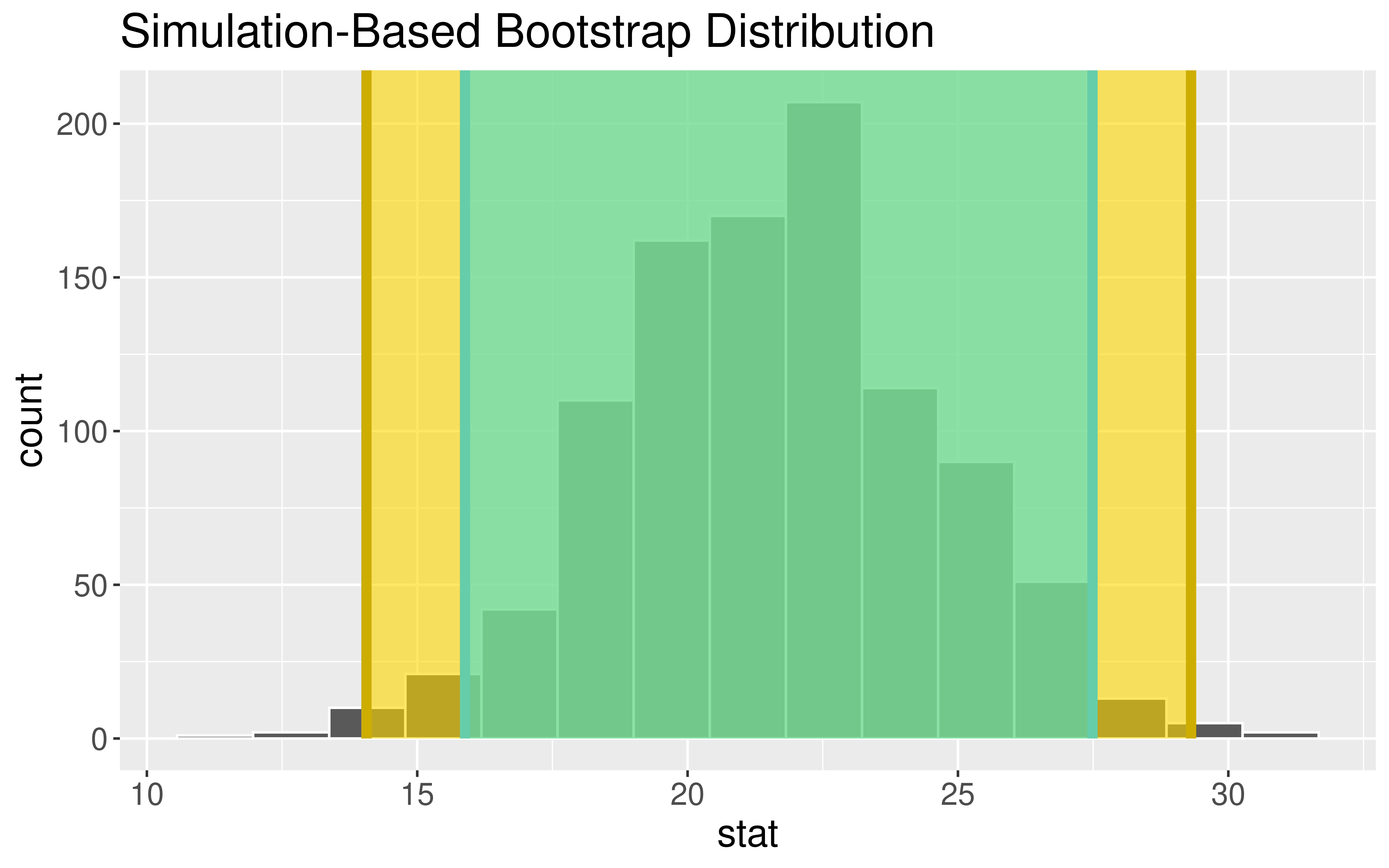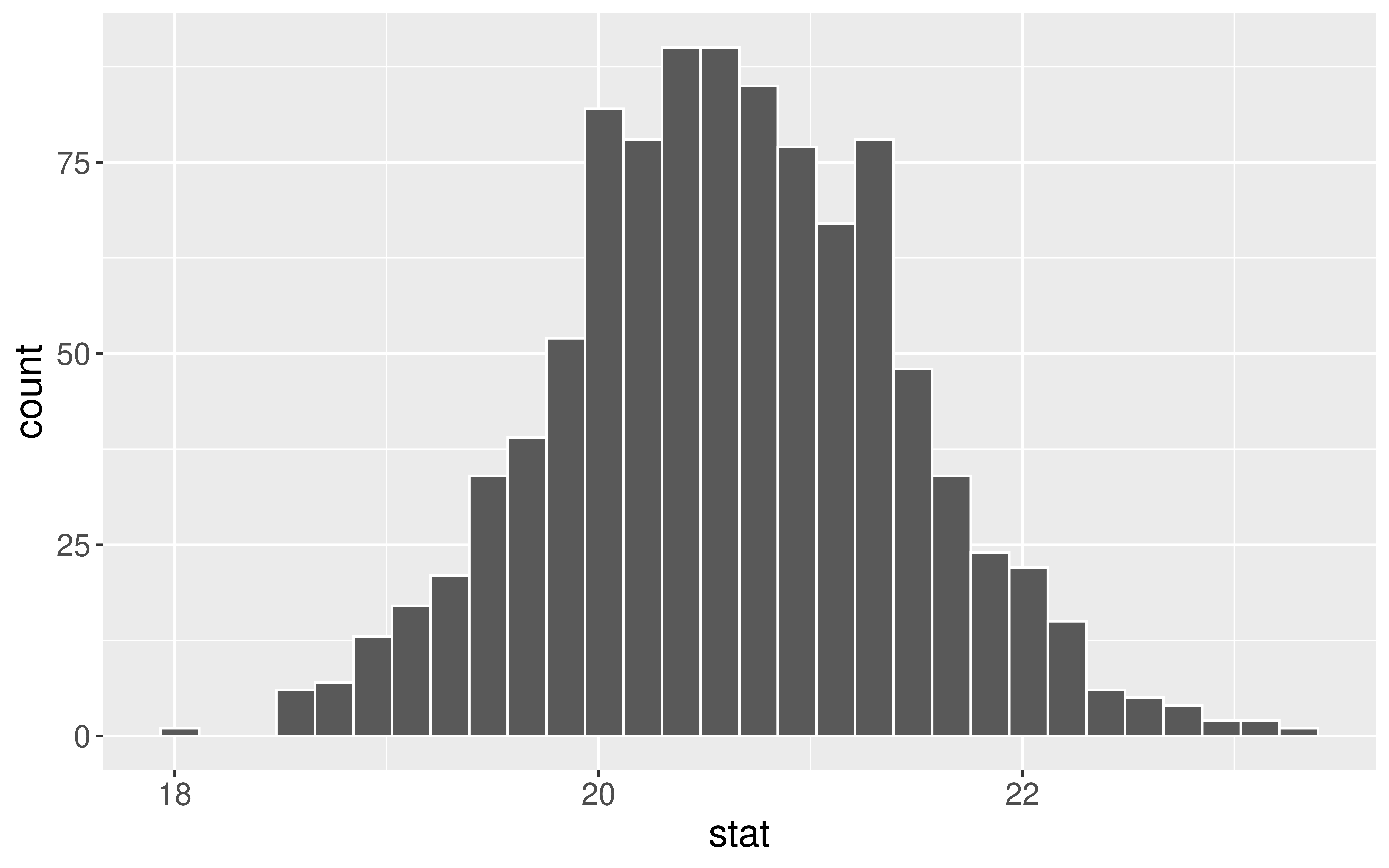We approximate \(\mbox{SE}\) with \(\widehat{\mbox{SE}}\) = the standard deviation of the bootstrapped statistics.