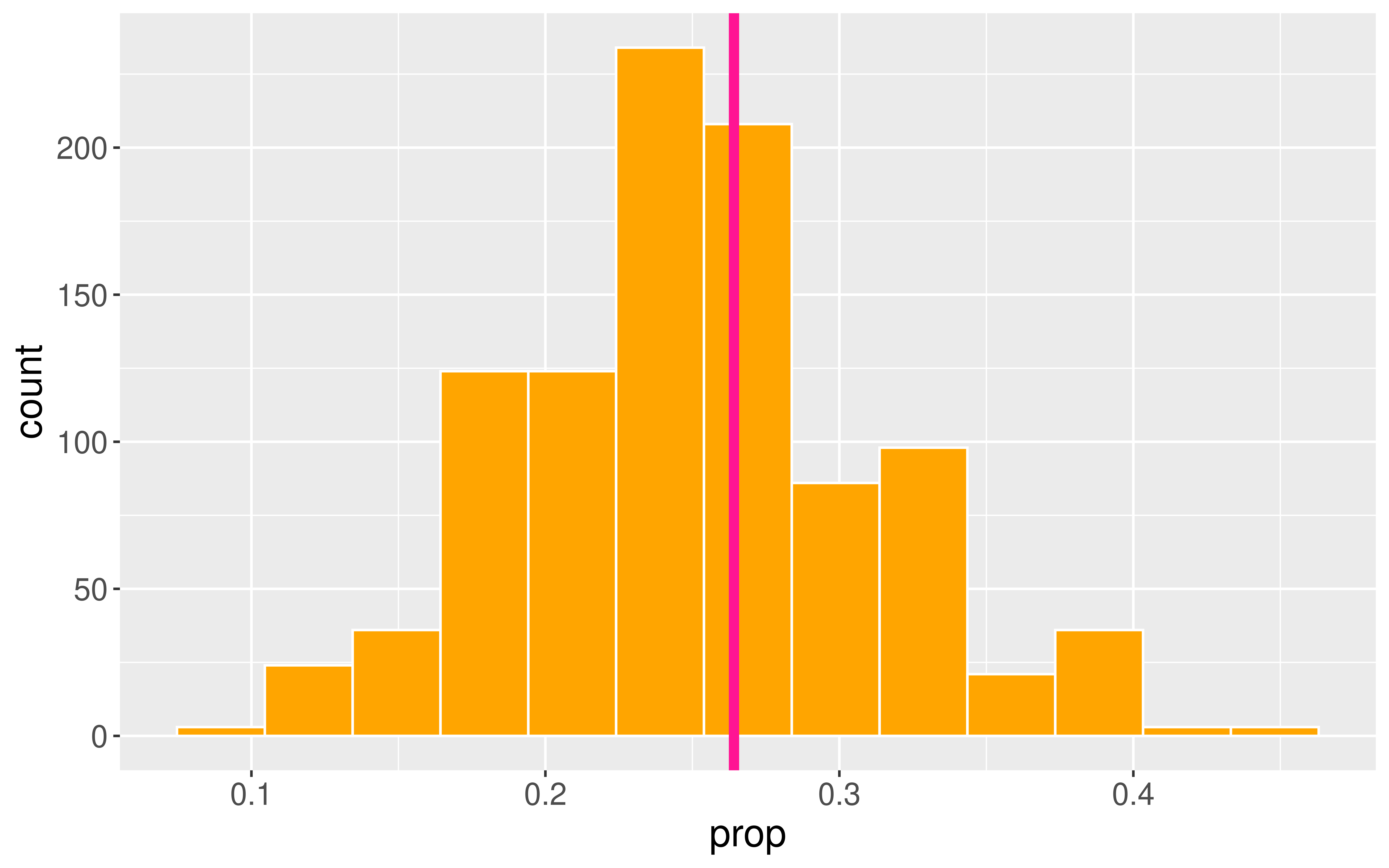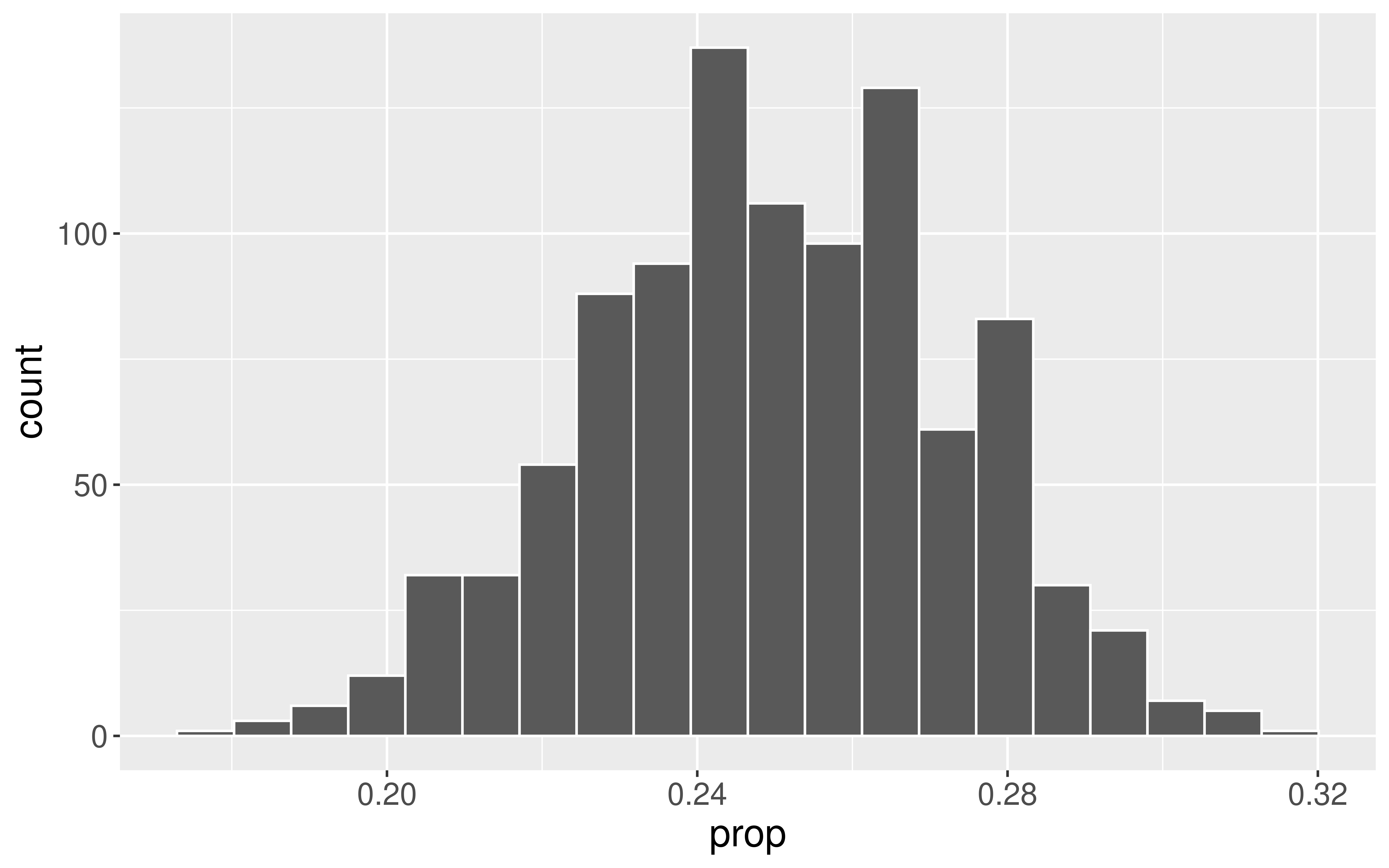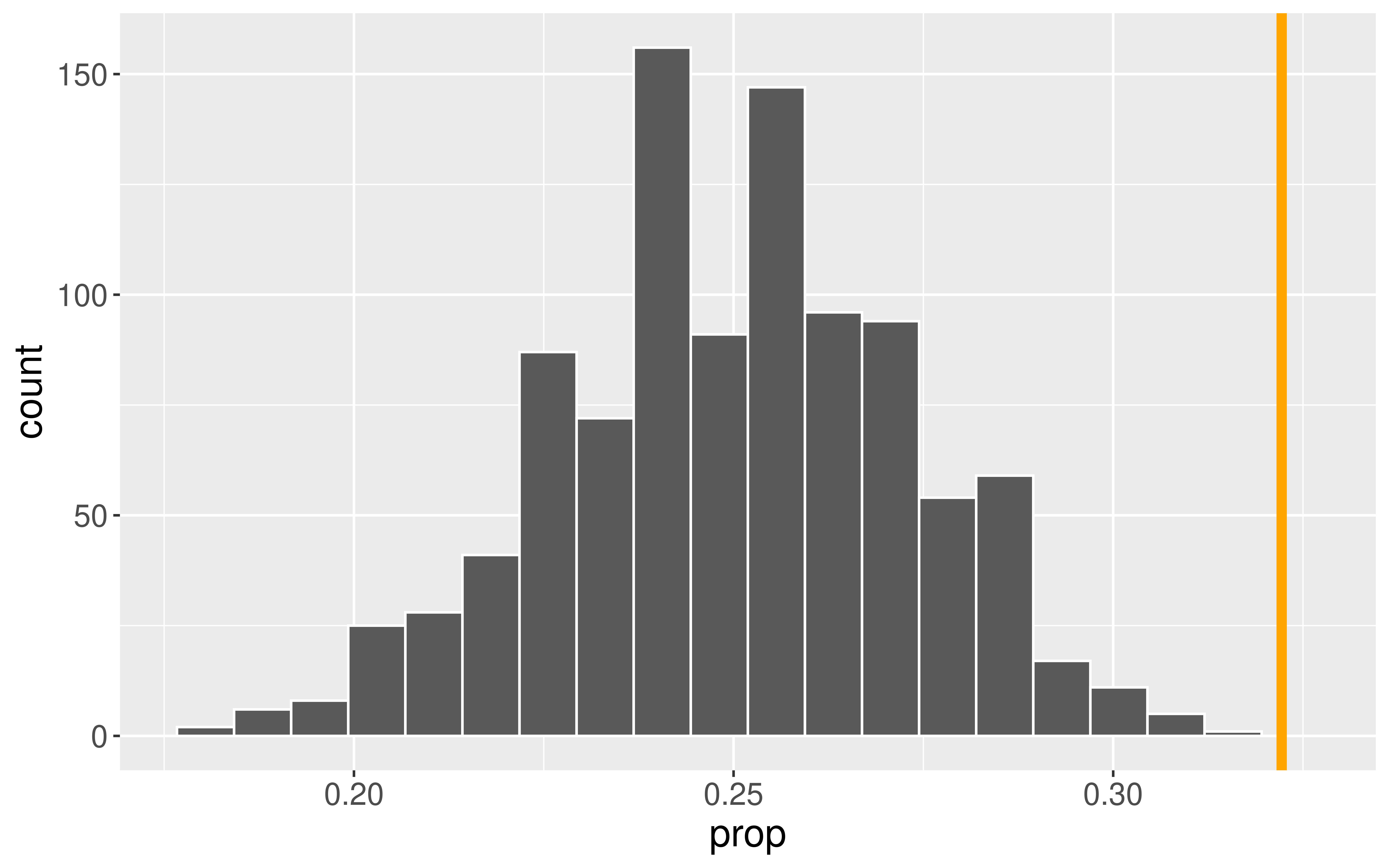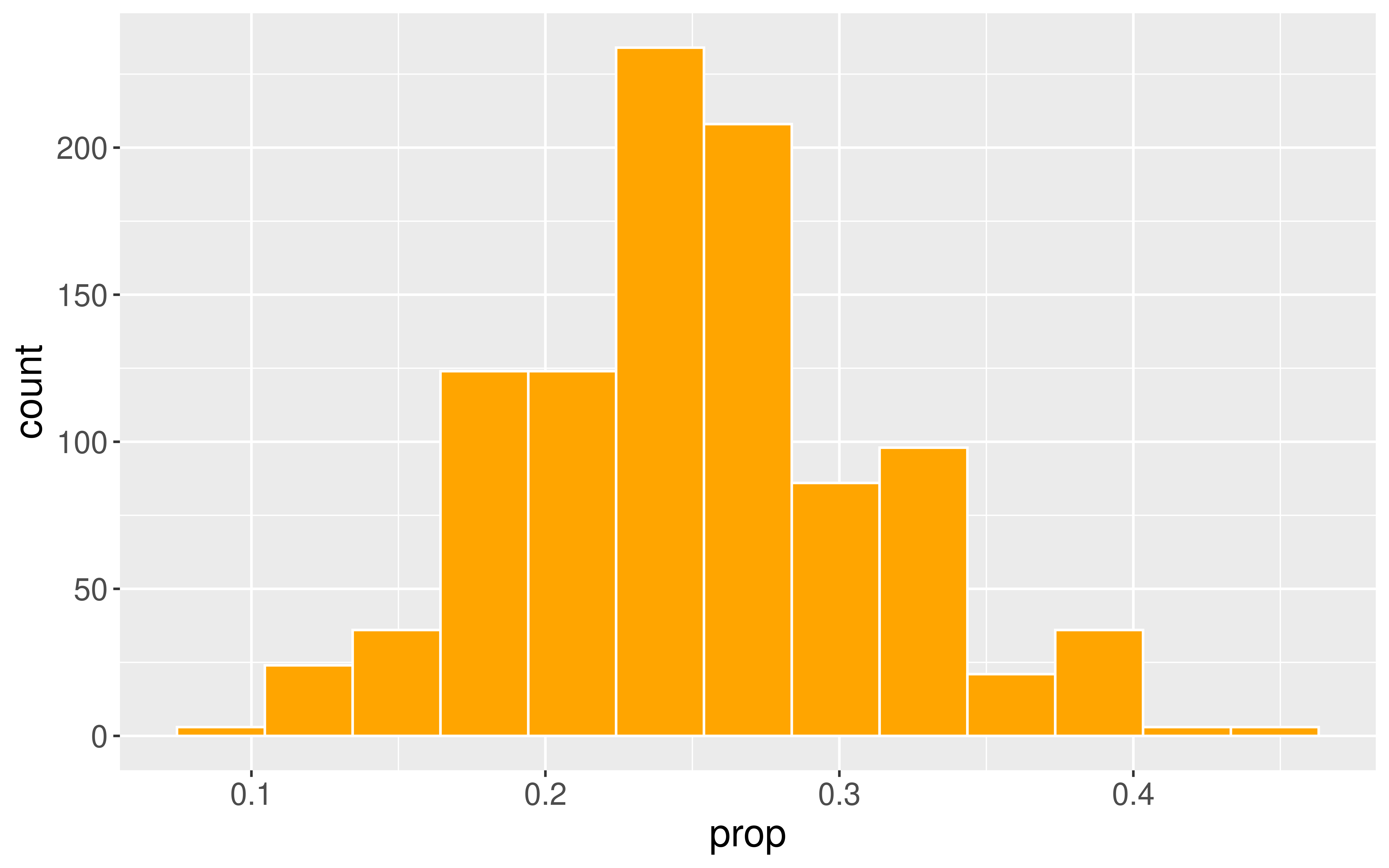 To help us answer d., we need a sampling distribution for the sample proportion where we assume the “receivers” were purely guessing!