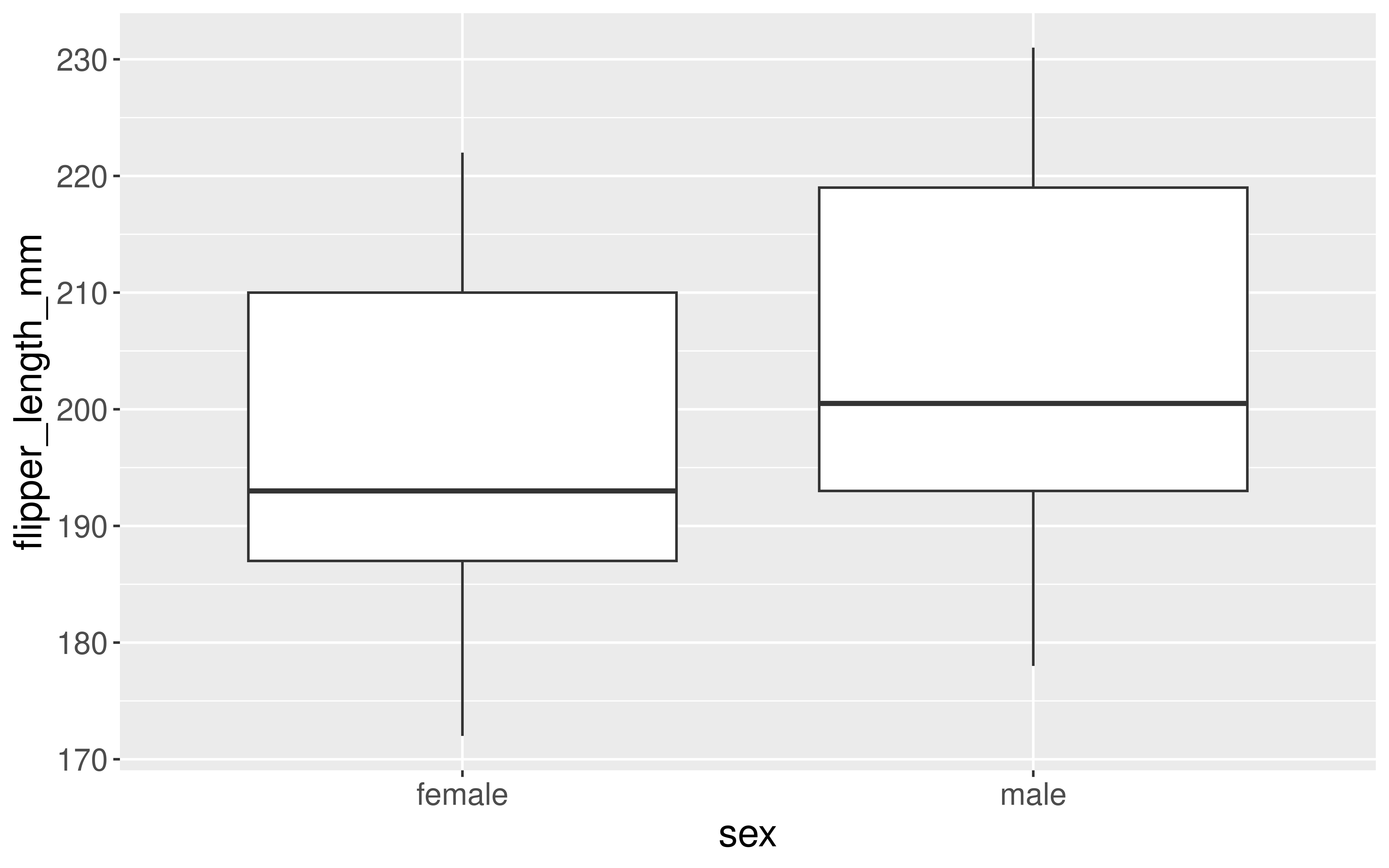 RRLet’s return to the penguins data and ask if flipper length varies, on average, by the sex of the penguin.